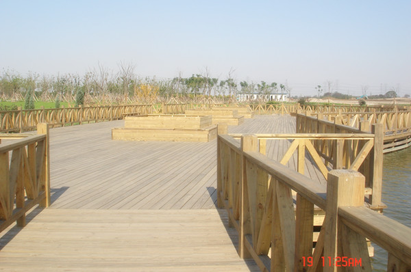 本公司采用防腐處理新技術(shù),經(jīng)專業(yè)防腐處理后,具有耐磨損,紋理清晰美觀,易保養(yǎng)等特點,同時也極具親和力。 我們的產(chǎn)品能抵抗白蟻的侵蝕和孢子真菌的生長,包括水中生物的寄宿和其他昆蟲的產(chǎn)生和繁殖,正常使用下,產(chǎn)品壽命在30年以上。