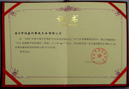 我公司在2013年在中國木材保護(hù)工業(yè)協(xié)會進(jìn)行的產(chǎn)品抽檢活動中,依據(jù)GB/T22102-2008標(biāo)準(zhǔn)要求檢測進(jìn)過處理過的CCA、ACQ防腐木,達(dá)到C3級要求。